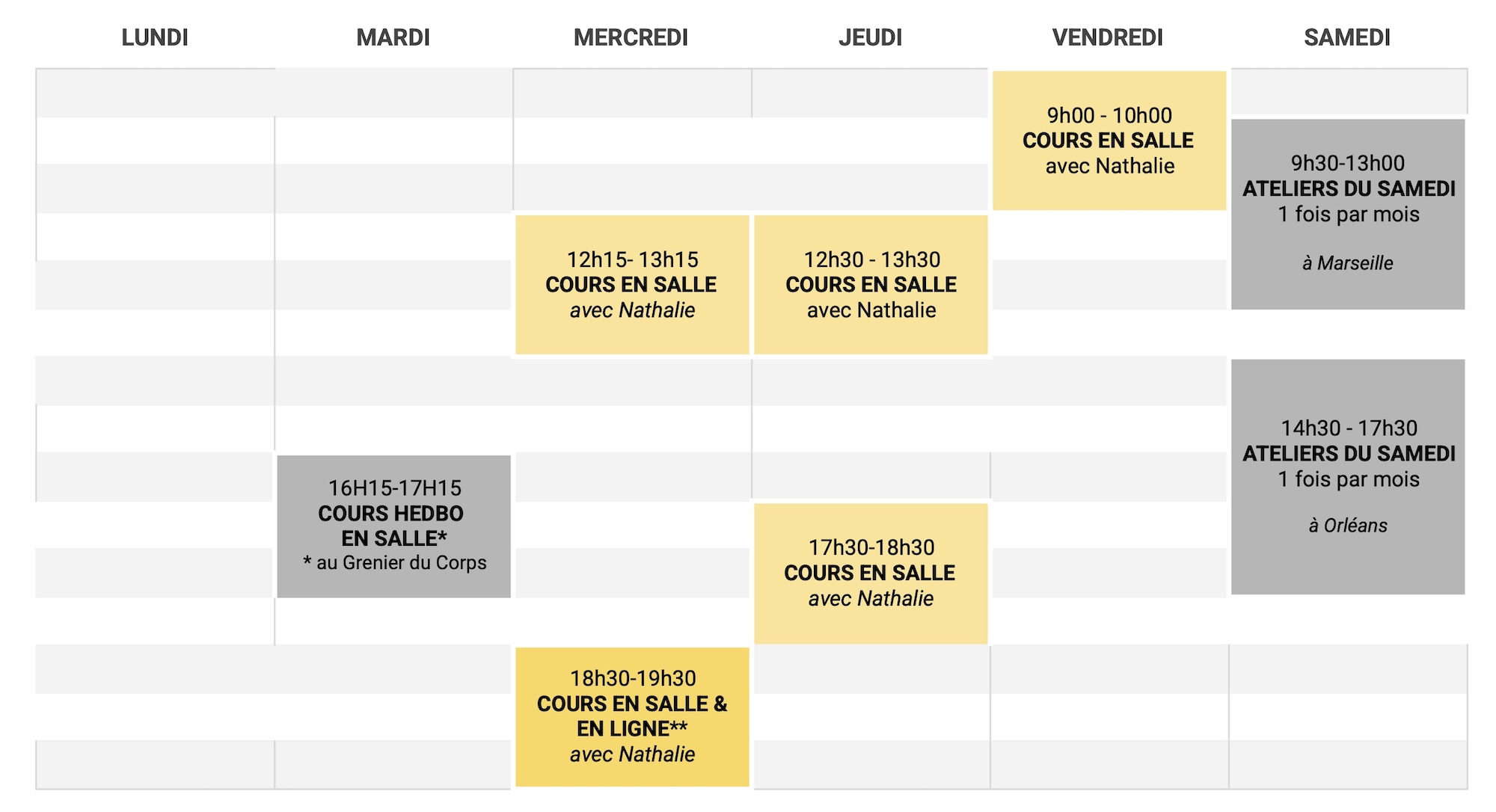 **Les Cours en Salle et en Ligne sont des cours hybrides !