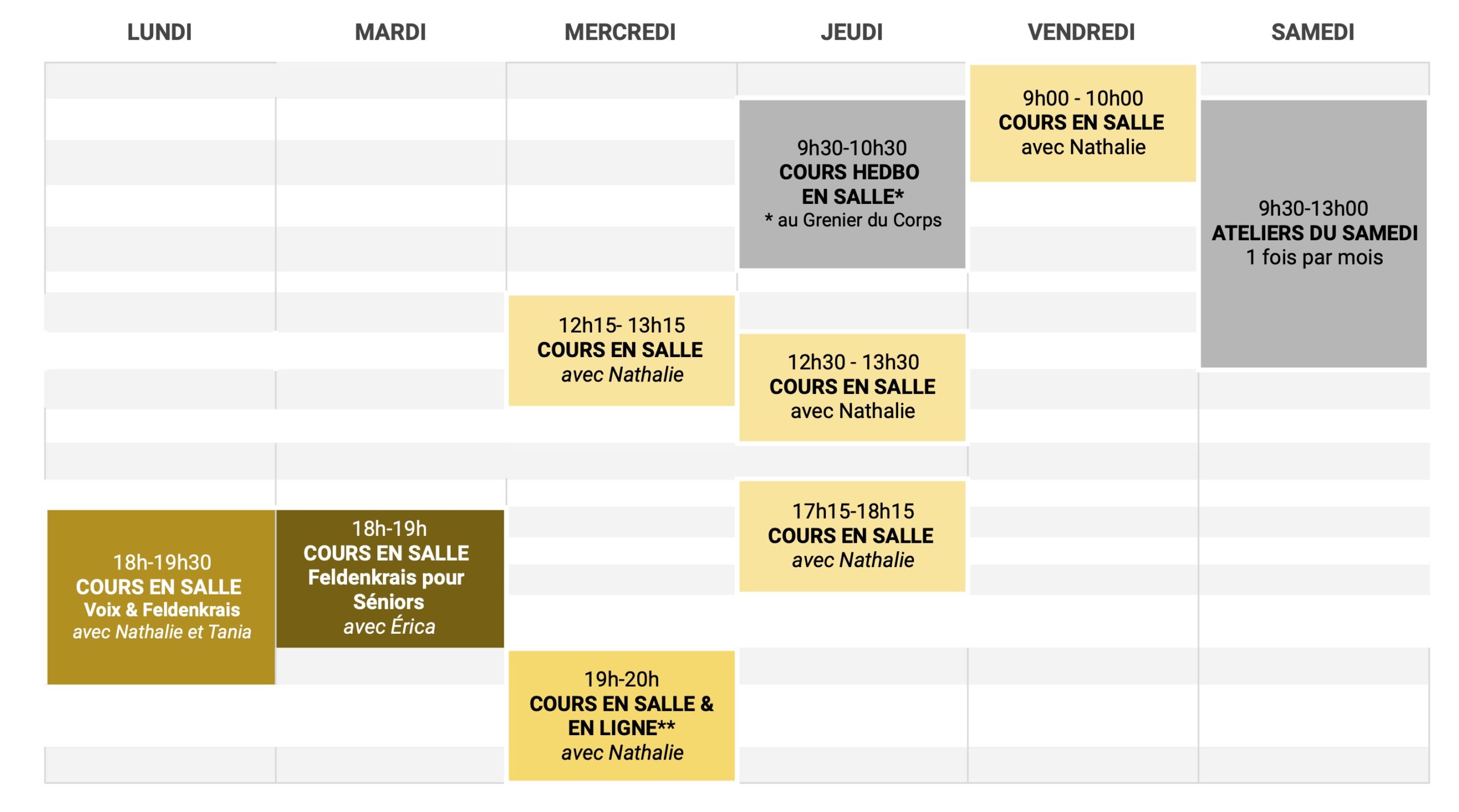 **Les Cours en Salle et en Ligne sont des cours hybrides !